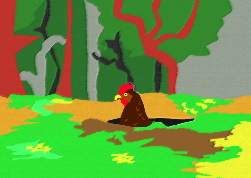 12.40 – Digger chicken is sitting in the hole it has just made, not doing much. Looks happy enough though.