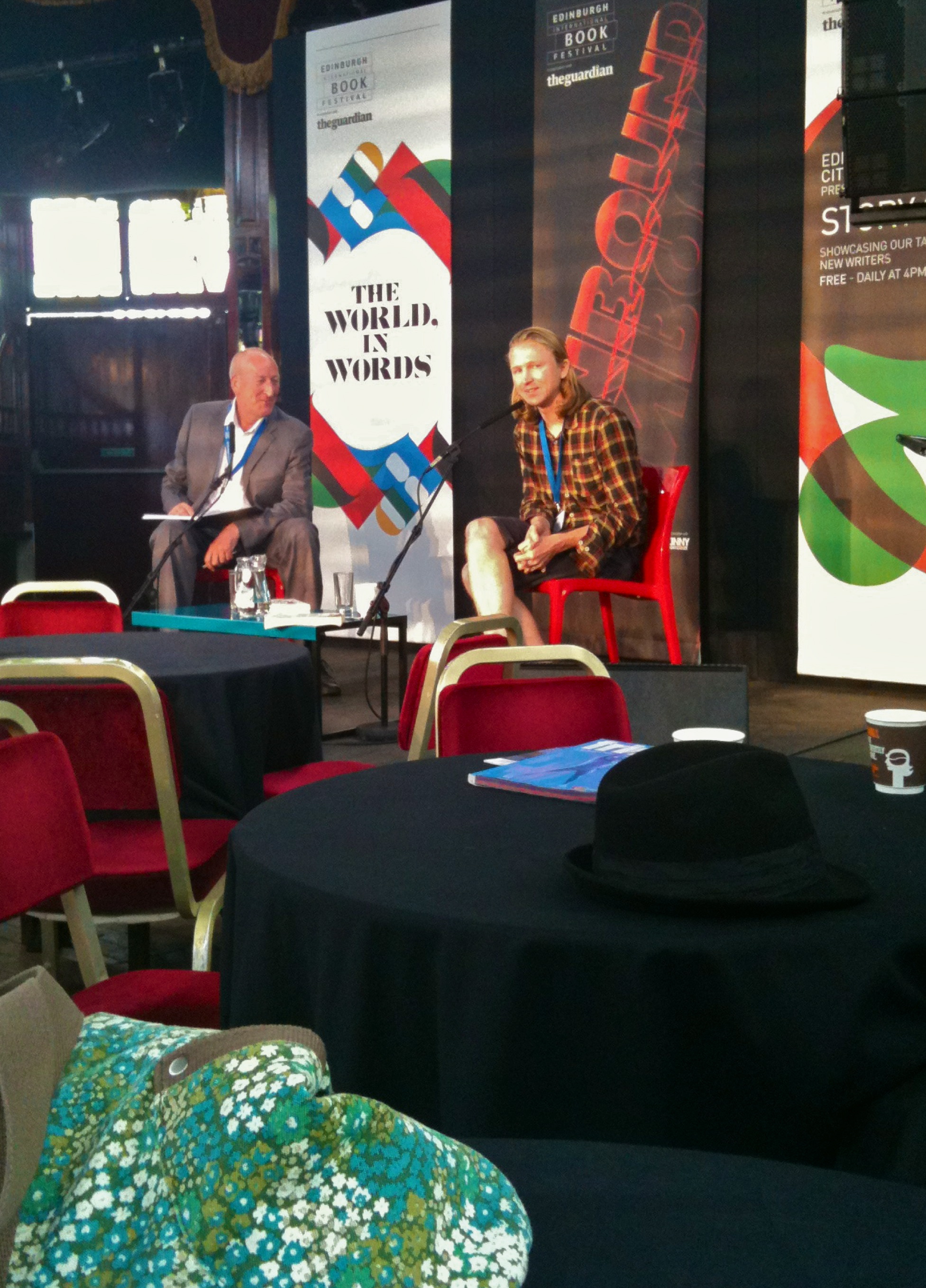 This morning I went to my first reading of the Edinburgh Book Festival, where I was greeted at the Spiegeltent by a man wielding free coffee. I have never been more pleased to see anyone – I really needed some coffee. I didn’t realize how much until I tried to milk it with another jug of coffee, at which point someone asked me if I was there from The Scotsman. I take heart that whoever is covering the book festival from there is as dazed and confused as I am first thing.