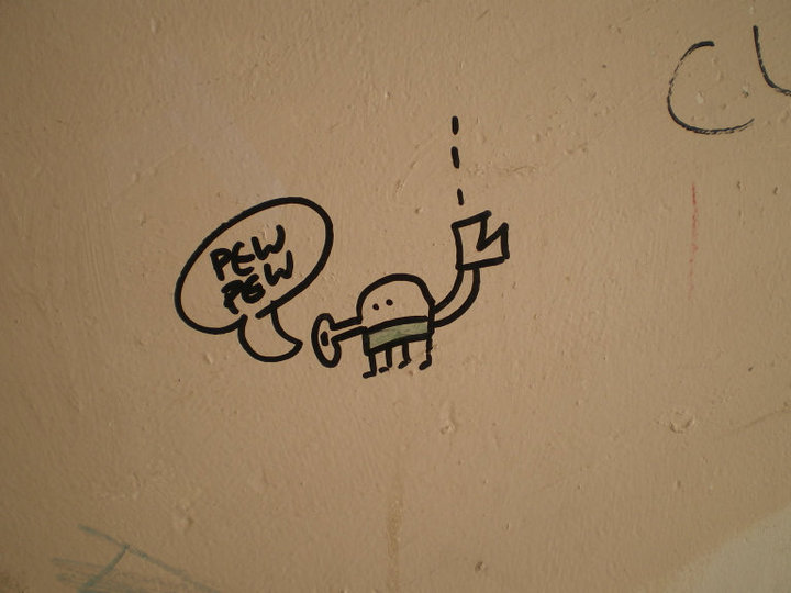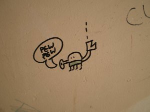 Today I present for your consideration another short story from last month.  The inspiration came from a bit of graffiti I noticed one day on my walk home from work.  I am a fan of graffiti, but I’ve got no idea what the deal is with this particular tag.  You see it all the time around Edinburgh, though.