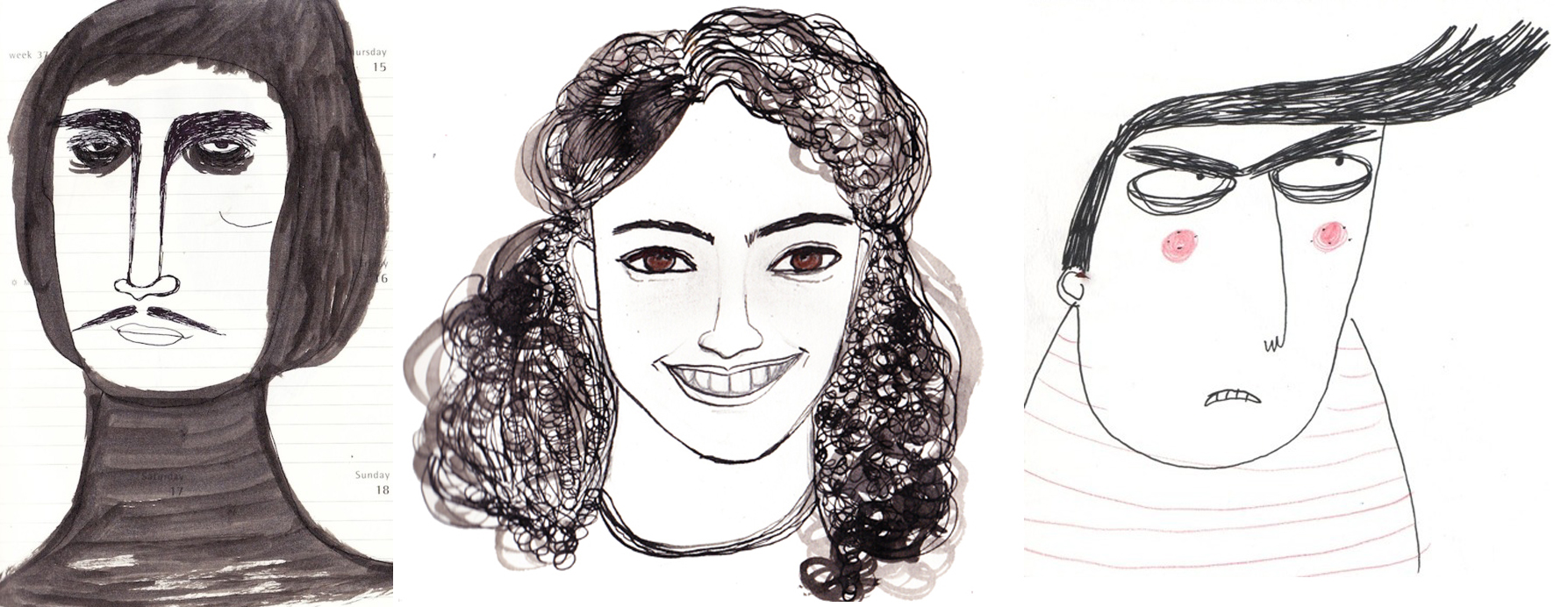 Aurora Cacciapuoti is a Sardinian illustrator currently based in Cambridge. She splits her time between running art workshops and working as a freelance illustrator. Whilst I was writing 12 books last year (or 1,667 words a day) she was drawing 365 faces (or 1 face a day). You can see them all on her tumblr page.