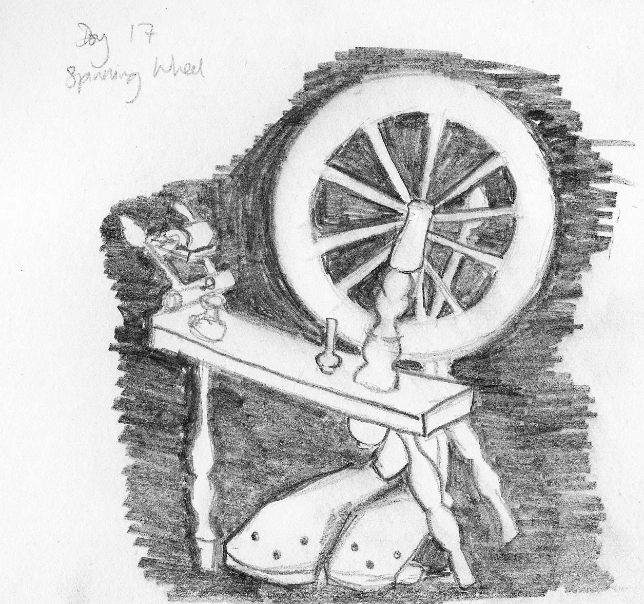 The gifts are slightly unusual – a bit like when your granny starts to lose it a bit and gives you things where you’re like ‘wow, what a lovely… what is that?’ One is a spinning wheel, which seems like it would be slightly unwieldy, or at least my one is as it’s a full size one with foot pedals. Presumably there are more portable versions which I will discover as my research progresses further.