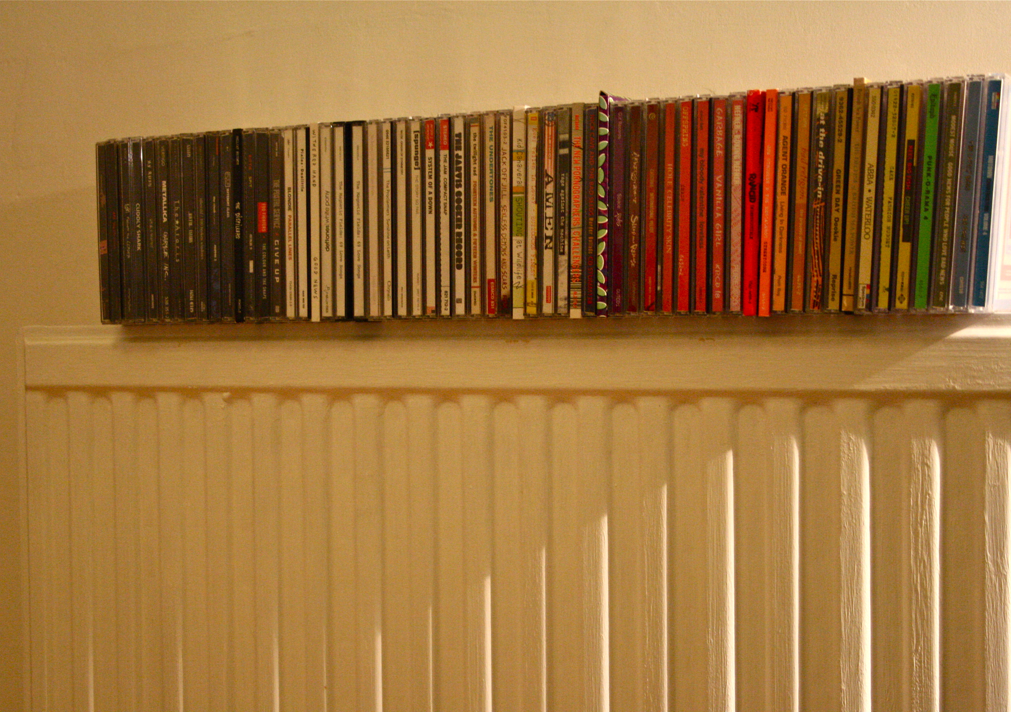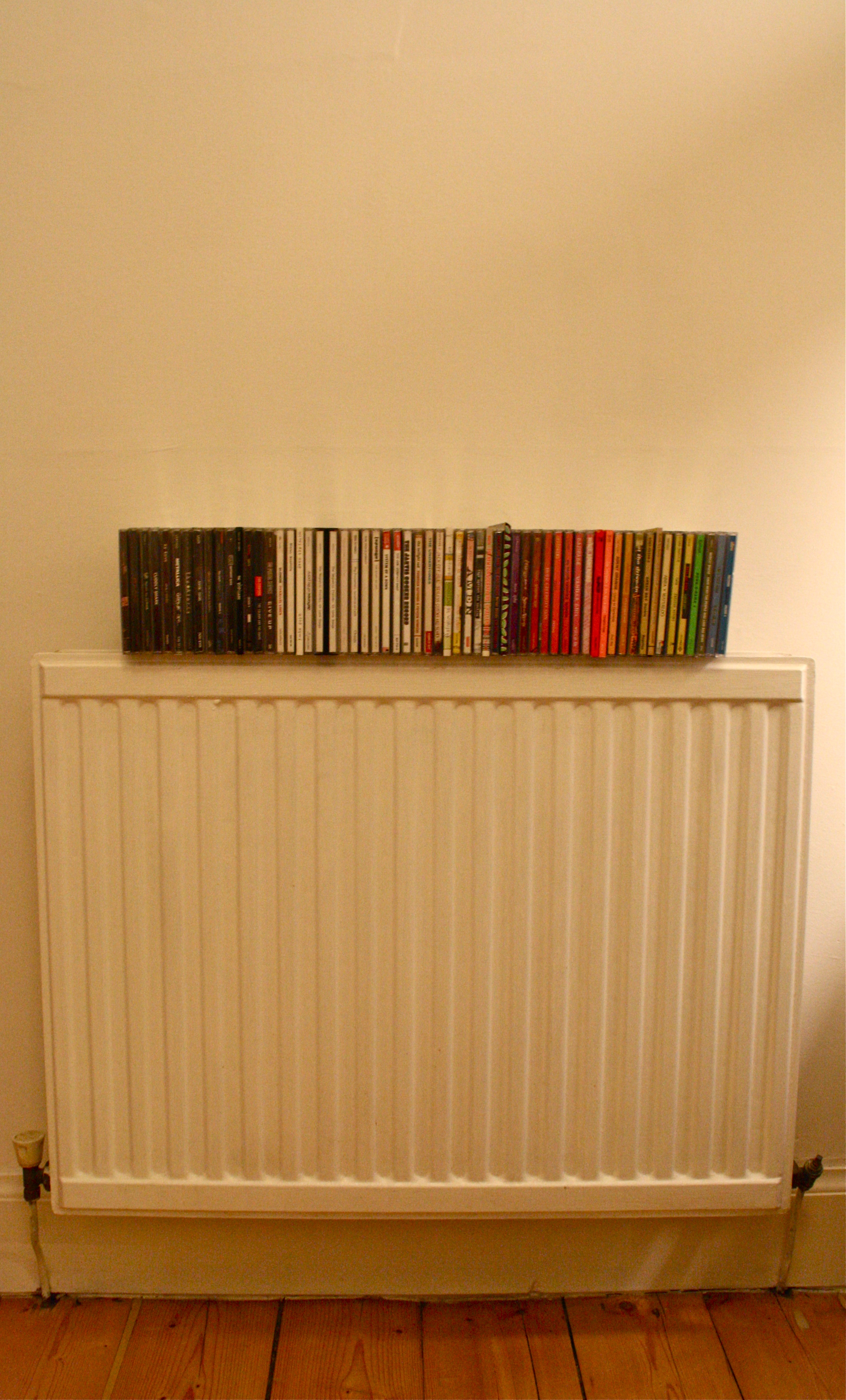 And that’s why I photographed a bunch of CDs that have travelled with me from home with my parents to university and three different flats in Edinburgh. Why on the radiator? Just because.