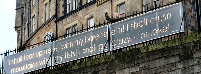Last week Terry Gilliam (yes, he of Monty Python, Brazil and Time Bandits fame – as if there could be another) visited Edinburgh to unveil a 10-metre long illuminated quotation from Miguel de Cervantes’ Don Quixote. As you do.