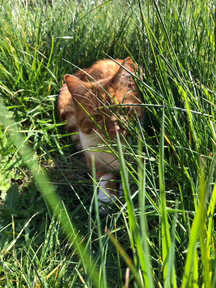 We spent some time in the garden trying to find the cat, who is a master of disguise. Where could he possibly be? This gave the baby the opportunity to eat a large quantity of our very long grass. Win-win.